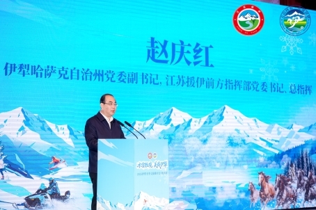 伊犁哈萨克自治州党委副书记、江苏援伊前方指挥部党委书记、总指挥赵庆红在致辞中表示,“今年冬天我们将围绕冰雪运动、冰雪节庆、冰雪民俗等开展冰雕雪雕展、伊犁河秦淮灯会、雪地刁羊比赛、玉湖冰上帆船赛、雪地千人火锅盛宴、雪地足球赛、高山滑雪比赛等五大类109项冰雪旅游季系列活动,暖阳滑雪、雪地摩托、秘境穿越、马拉爬犁等冰雪项目让您感受冰雪带来的自由欢快和淋漓酣畅,而冬不拉、手风琴、贝伦舞等非物质文化遗产则会呈现无穷魅力。我们还诚意满满带来了2025年“引客入伊”各项优惠政策和奖励措施,针对不同游客层面精心安排了多重景区门票优惠和相关奖补措施。我们相信只要您和家人来到伊犁,一定会有一个终生难忘的美好体验。”