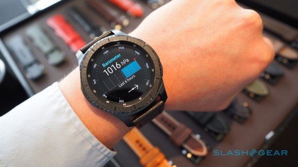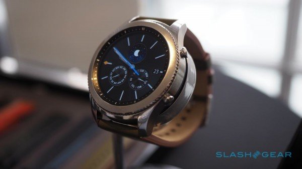 外型层面,Gear S3有着更加独特的造型设计,外壳三围尺寸为46 x 49 x 12.9 mm。现有2个不一样的版本号,一个是偏重设计风格的Classic版,另一个则是更合适户外活动人员的Frontier版,2款的净重各自为57g和62g。